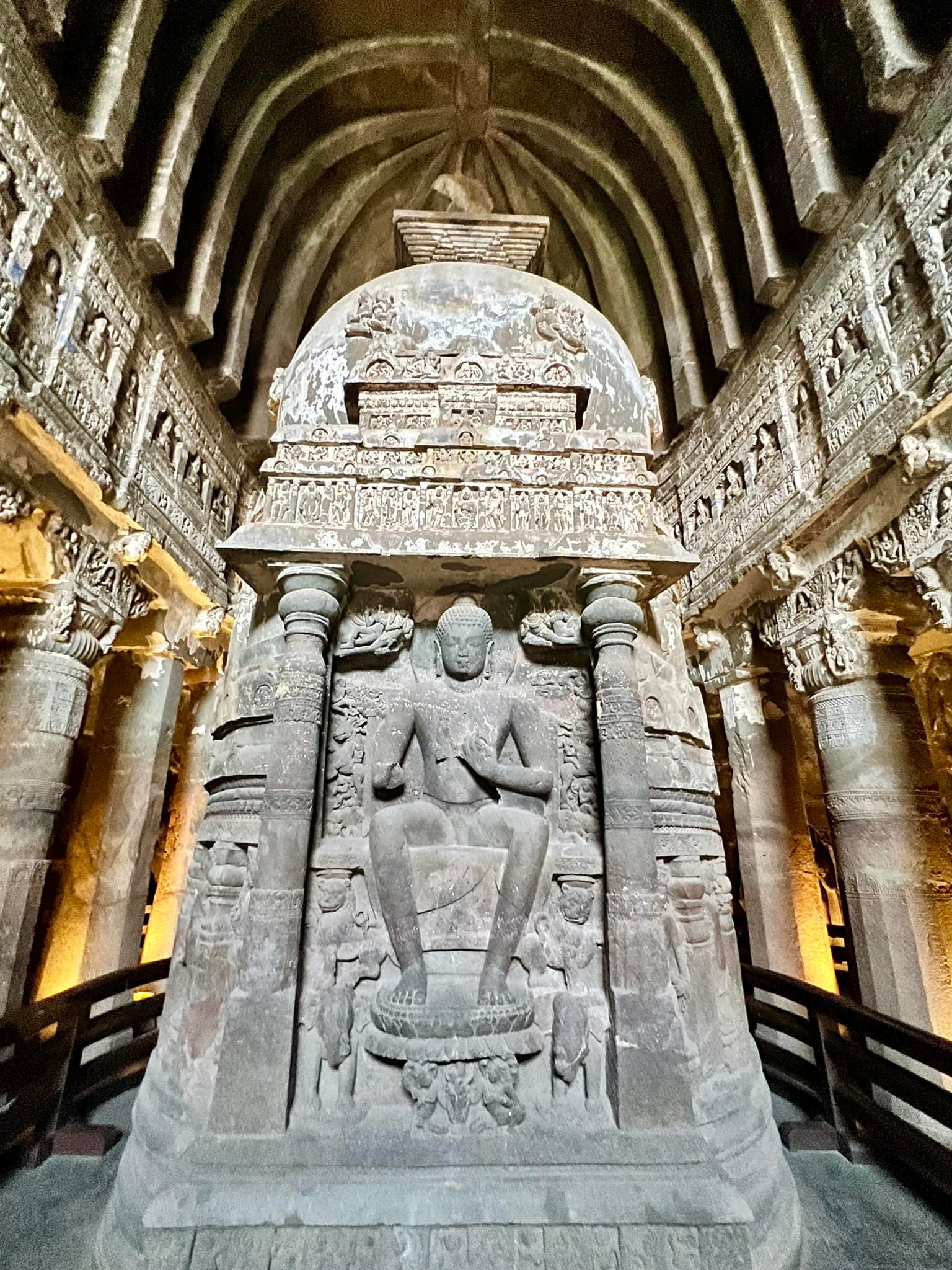 These caves date back to 5th thru 10th century AD. There are 34 rock-cut temples or caves, each of which has its own significance. Ellora Caves have Buddhist, Jain and Hindu rock-cut temples. It is apparent that back in the past, there was harmony between Hindus, Buddhists, and Jains, considering the close proximity of their religious buildings. These temples have been carved with enormous pillars, statues, gateways, corridors and walls depicting scenes from Hindu Mythology. Historians have called it “the most stupendous single work of art executed in India”. It was truly impressive to see how these large monolithic temples were architected and carved almost 1500 years ago.